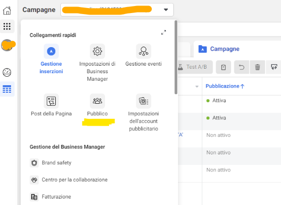 2. Si aprirà un menù pop-up. Clicca su Pubblico