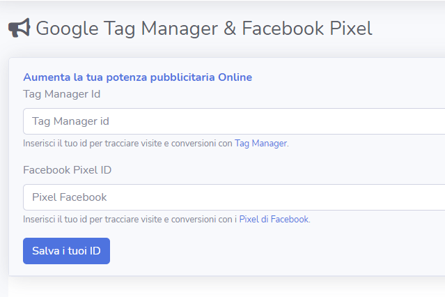 Su VorreiOrdinare c'è una sezione apposita per inserire facilmente il pixel di Facebook.
