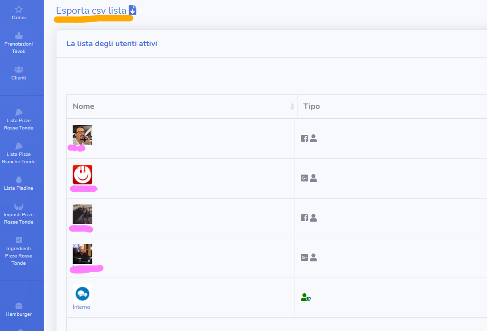 Ah, non so se lo sai ma su VorreiOrdinare hai il Database clienti che puoi esportare in excel per estrapolarne mail e numero di telefono.