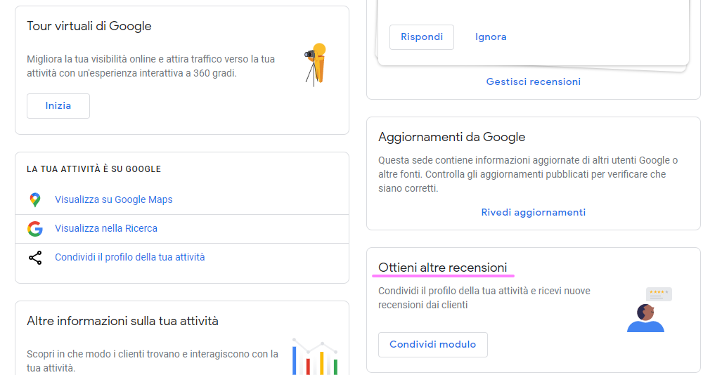 Sulla tua scheda Google My Business vai su Richiedi altre Recensioni: